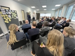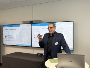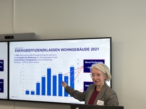 Mit dabei rund 50 Teilnehmende u.a. von städtischen Organisationen, Bauindustrieunternehmen, Verbänden und Architektenbüros. Spannende Impulse gab es zum Start: Anne-Caroline Erbstößer vom Hauptverband der Deutschen Bauindustrie (HDB) informierte über den Umsetzungsstand der EU-Gebäuderichtlinie (EPBD) in nationales Recht und über die Entwicklung zum angekündigten Gebäudemodernisierungsgesetz.