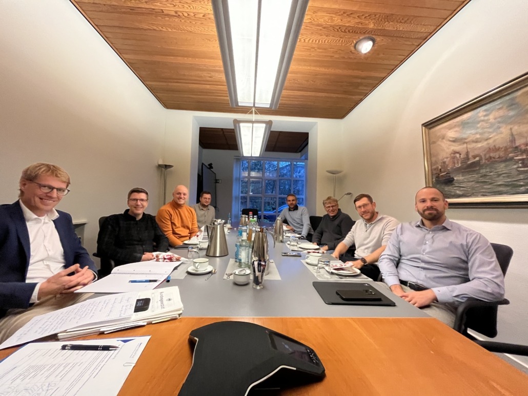 Bei der Sitzung am 4. Dezember wurde Steffen Biernacki, Leiter Unternehmensentwicklung von der Schwalbe Baugesellschaft mbH & Co. KG (Foto: ganz rechts), zum neuen Vorsitzenden gewählt. Er folgt auf Moritz Stamer (Asphalt Mischwerk Eutin GmbH & Co. KG), dem der Verband für sein Engagement und seine Impulse herzlich dankt.